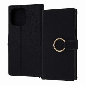 - iPhone 14 Pro 耐衝撃 手帳型レザーケース KAKU Ring/ブラック