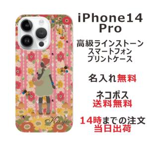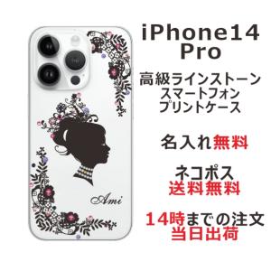 - iPhone14 Pro アイフォン14プロ らふら 名入れ スマホケース ラインストーン フラワープリンセス
