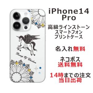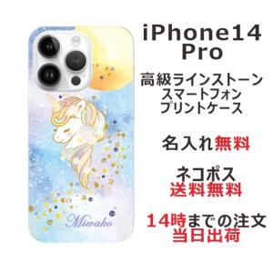 - iPhone14 Pro アイフォン14プロ らふら 名入れ スマホケース ラインストーン ユニコーン