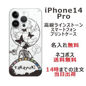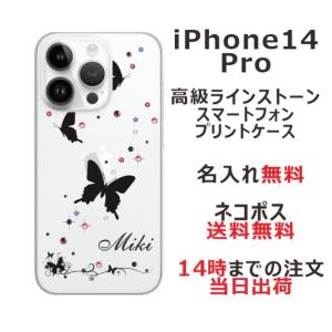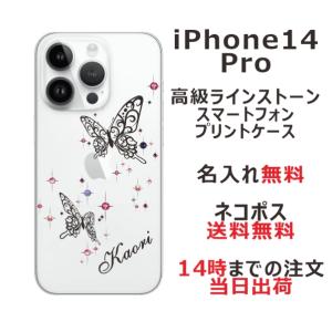 - iPhone14 Pro アイフォン14プロ らふら 名入れ スマホケース ラインストーン バタフライ