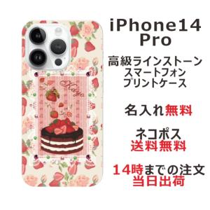 - iPhone14 Pro アイフォン14プロ らふら 名入れ スマホケース ラインストーン ストロベリーケーキ