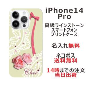 - iPhone14 Pro アイフォン14プロ らふら 名入れ スマホケース ラインストーン ローズレース
