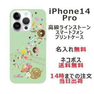 - iPhone14 Pro アイフォン14プロ らふら 名入れ スマホケース ラインストーン スイーツメロディ