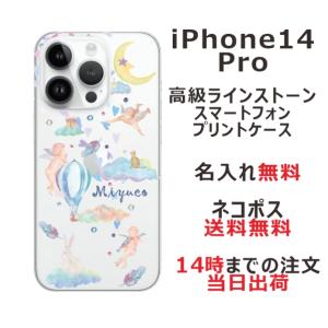 - iPhone14 Pro アイフォン14プロ らふら 名入れ スマホケース ラインストーン エンジェルスカイ