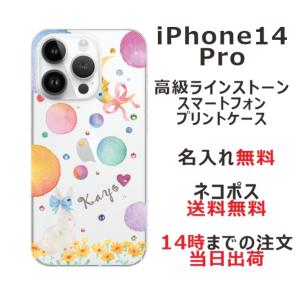 - iPhone14 Pro アイフォン14プロ らふら 名入れ スマホケース ラインストーン カラフルしずく