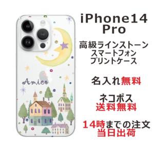 - iPhone14 Pro アイフォン14プロ らふら 名入れ スマホケース ラインストーン 月 街