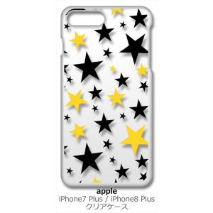 iPhone 8 Plus/iPhone 7 Plus Apple アイフォン クリア ハードケース 星柄(ブラック/イエロー) スター スマホ ケース スマートフォン カバー カ