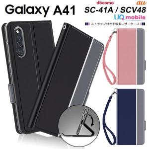 - Galaxy A41 [ SC-41A / SCV48 ] シンプル 手帳型 レザーケース 手帳ケース 無地 高級 PU ストラップ付き 全面保護 耐衝撃 ギャラクシー エー docomo au UQ mobil