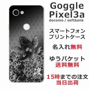 - Google Pixel3a ケース グーグルピクセル3a カバー らふら 名入れ 昇り鯉黒