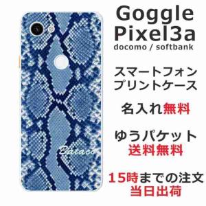 - Google Pixel3a ケース グーグルピクセル3a カバー らふら 名入れ へび柄ブルー