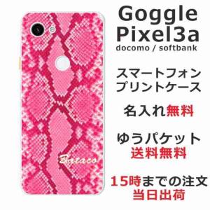 - Google Pixel3a ケース グーグルピクセル3a カバー らふら 名入れ へび柄ピンク