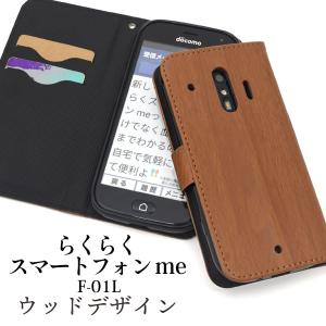 - らくらくホン F-42A /らくらくスマートフォン me F-01L共通対応 ウッドデザイン 手帳型ケース フラップベルト付き 保護カバー らくらくスマホ