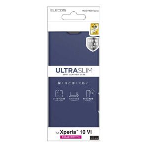 - エレコム ELECOM Xperia 10 VI ソフトレザーケース 薄型 磁石付 ネイビー PM-X241PLFUNV