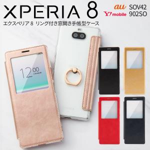 - Xperia8 ケース 手帳型 Xperia8 lite ケース カバー おしゃれ 韓国 SOV42 902SO J3273 スマホ カバー 手帳 落下防止 かわいい リング付き窓開き手帳型ケース