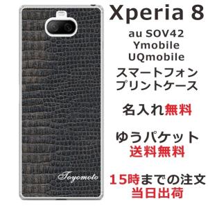- Xperia 8 ケース SOV42 エクスペリア8 カバー らふら 名入れ クロコダイル ブラック