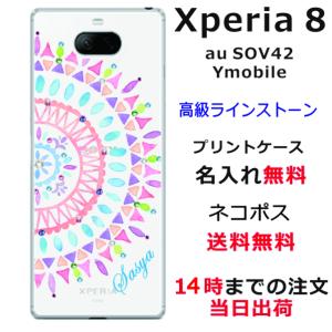 - Xperia 8 ケース SOV42 エクスペリア8 カバー ラインストーン かわいい らふら 名入れ エスニック