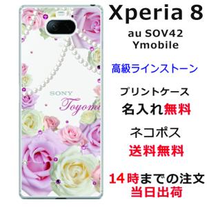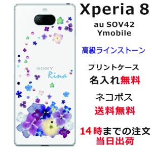 - Xperia 8 ケース SOV42 エクスペリア8 カバー ラインストーン かわいい フラワー 花柄 らふら 名入れ 押し花風 春花