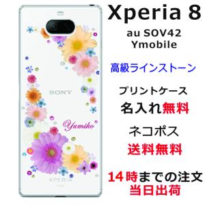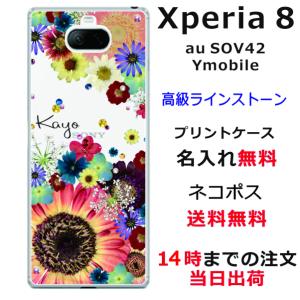 - Xperia 8 ケース SOV42 エクスペリア8 カバー ラインストーン かわいい フラワー 花柄 らふら 名入れ 押し花風 フラワーアレンジカラフル