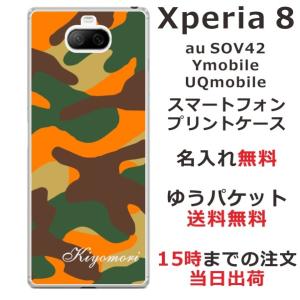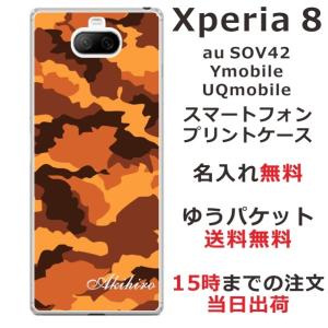 - Xperia 8 ケース SOV42 エクスペリア8 カバー らふら 名入れ 迷彩 オレンジ