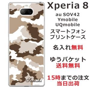 - Xperia 8 ケース SOV42 エクスペリア8 カバー らふら 名入れ 迷彩 ブラウン