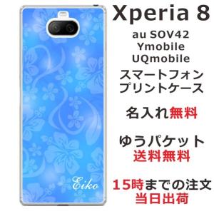 - Xperia 8 ケース SOV42 エクスペリア8 カバー らふら 名入れ ハイビスカスブルー