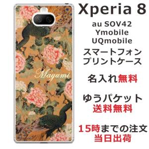 - Xperia 8 ケース SOV42 エクスペリア8 カバー らふら 名入れ 和柄 孔雀牡丹