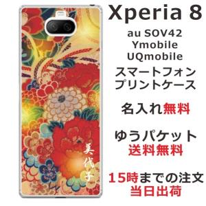 - Xperia 8 ケース SOV42 エクスペリア8 カバー らふら 名入れ 和柄 着物和花牡丹