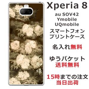 - Xperia 8 ケース SOV42 エクスペリア8 カバー らふら 名入れ 和柄 セピア牡丹