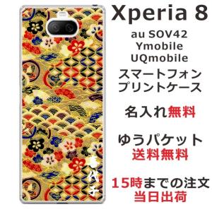- Xperia 8 ケース SOV42 エクスペリア8 カバー らふら 名入れ 和柄 千代紙ゴールド