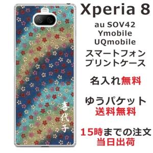 - Xperia 8 ケース SOV42 エクスペリア8 カバー らふら 名入れ 和柄 和小花ブルーグラデ