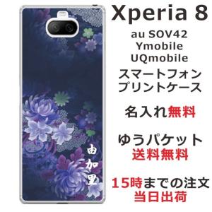 - Xperia 8 ケース SOV42 エクスペリア8 カバー らふら 名入れ 和柄 和花紫桃グラデ