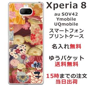 - Xperia 8 ケース SOV42 エクスペリア8 カバー らふら 名入れ 和柄 和花パッチワーク