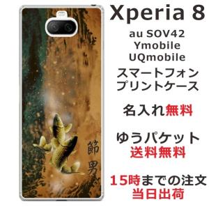 - Xperia 8 ケース SOV42 エクスペリア8 カバー らふら 名入れ 和柄 黄金双鯉