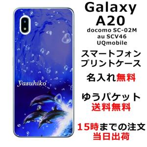 - Galaxy A20 ケース SC-02M SCV46 ギャラクシーA20 カバー らふら 名入れ ドルフィン ジャンプ