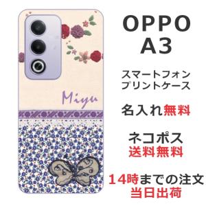 - OPPO A3 5G オッポ A3 5G らふら 名入れ スマホケース 蝶 パープルフラワー