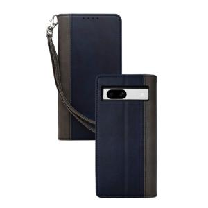 - 叶kanae カナエ Google Pixel7a ケース カバー 手帳型 本革調 レザーケース ネイビー×グレー 1個入り