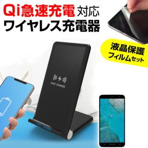 Apple iPhone 15 Plus [6.7インチ] 置くだけ充電 ワイヤレス 充電器 と 反射防止 液晶保護フィルム セット Qi(チー) 無線 互換品