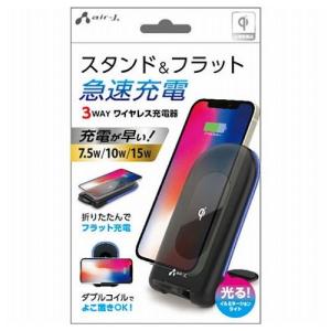 - 3個セット エアージェイ 3WAY ワイヤレス充電スタンド15W、10W、7.5W対応 BK AWJ-PD10-BKX3 代引不可