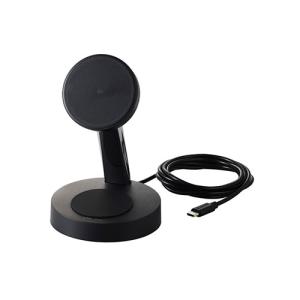 - エレコム メーカー直送 ワイヤレス充電器 Qi2対応 15W/7.5W/5W マグネット式充電スタンド 3in1同時充電ケーブル付属 1.5m(ブラック)
