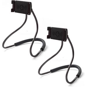 - 【互換品】 首掛け式 スマホホルダー 2個セット スマホ首掛け 携帯 スタンド ハンズフリー 寝ながら 自撮り 配信(ブラック2個セット)