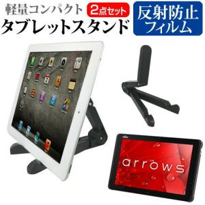 - 富士通 arrows Tab QHシリーズ WQ2/B1 タブレットスタンド と 反射防止 液晶保護フィルムセット デスク天板 ヘッドボード 互換品