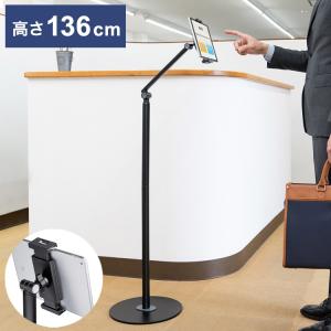 - サンワサプライ タブレット用フロアスタンド タブレット iPad フレキシブルアームスタンド チルト機能 自立 動画配信 受付 サイネージ 角度 高さ 代引不可