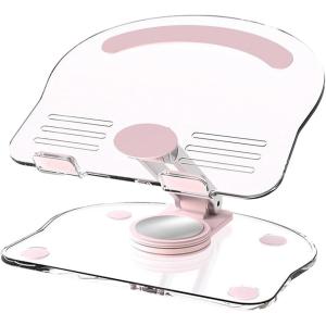 - タブレット スタンド 360°回転 高さ調整 角度調整 卓上 透明 クリア ホルダー 持ち運び 折りたたみ 軽量 滑り止め (ピンク)