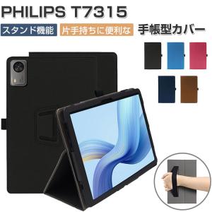 PHILIPS T8015 ケース 11インチ カバー PUレザー 手帳型 持ち手 ベルト バンド付き ペンホルダー付き 落下防止ベルト 片手操作 取っ手 ペン収納