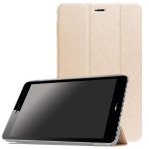 HUAWEI MediaPad T1 8.0 Firmware S8-701u 専用 三つ折クリア スマートカバー☆超薄 軽量型 スタンド機能 PUレザーケース ☆ゴールド