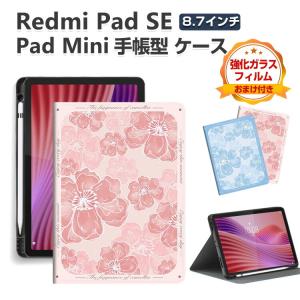 Xiaomi Pad Mini Redmi Pad SE 8.7インチ ケース カバー 綺麗な タブレット保護 スタンド機能 Smart Penの収納機能 便利 手帳型 花柄 おしゃれ 汚れ防止