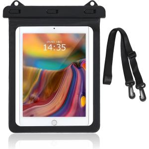 - 多機種対応 IPX8 防水 タブレットケース 11インチ迄のタブレットに最適 ストラップ付(ブラック)