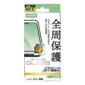 - エレコム PM-A25AFLGF iPhone 17 ガラスフィルム フレーム付 強化ガラス 10H 指紋防止 ブラック