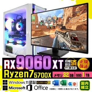 Microsoft Office ディスプレイ モニター 付き ゲーミング PC 新品 パソコン AMD Radeon RX9060XT Ryzen7 5700X メモリ32GB SSD 1TB Windows11 デスクトップ
