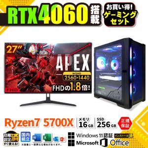 Microsoft Office ディスプレイ モニター 付き デスクトップPC 新品 パソコン RTX4060 AMD Ryzen7 5700X 16GB SSD 256GB Windows11 ゲーミング 安い セット